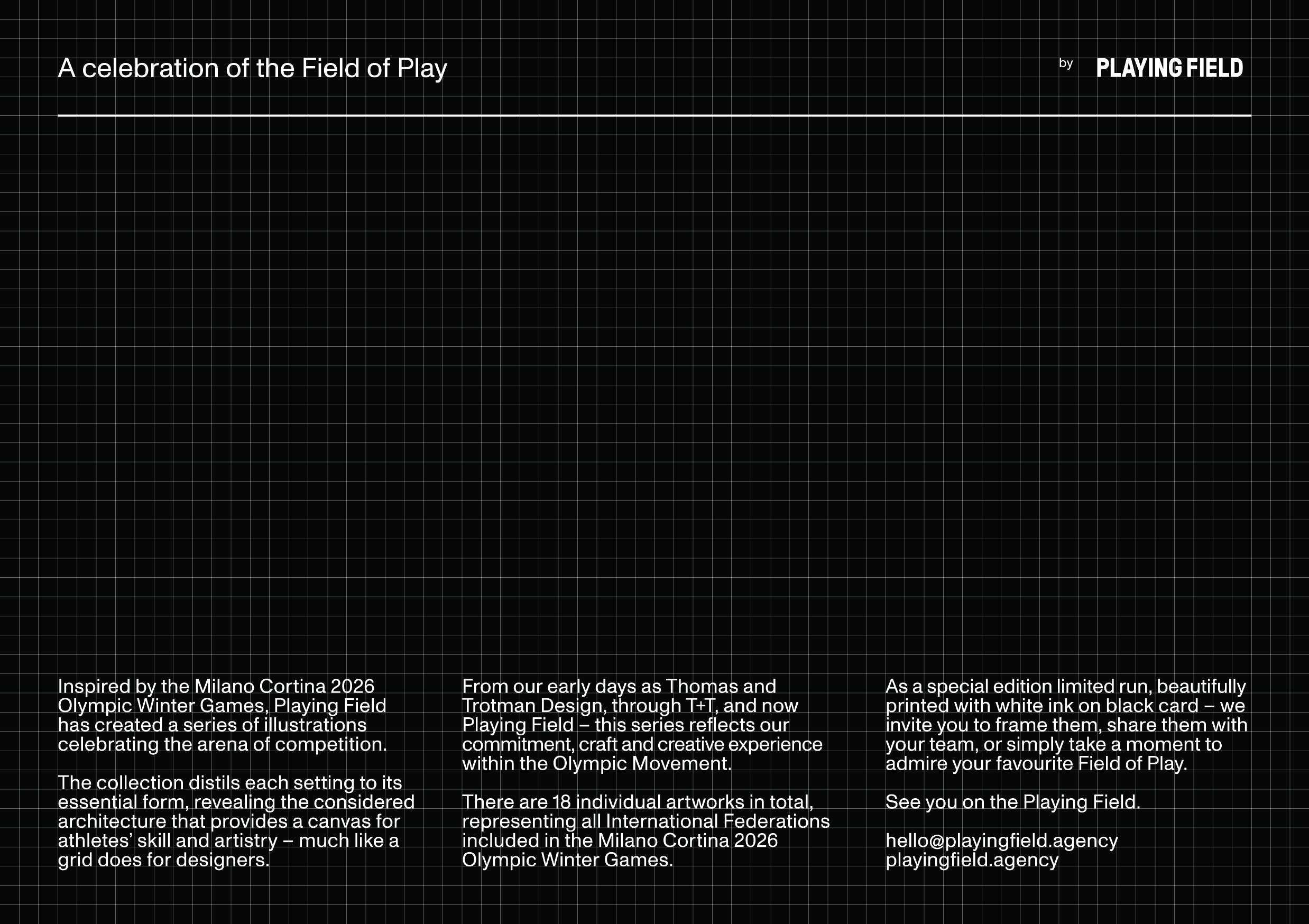 Whilst reflecting our name, this series also demonstrates our commitment, craft and creative experience within the Olympic Movement for 17 years. From our origins as Thomas and Trotman Design, through T+T, and now Playing Field – we’ve been there to help our clients move the world of sport forward.