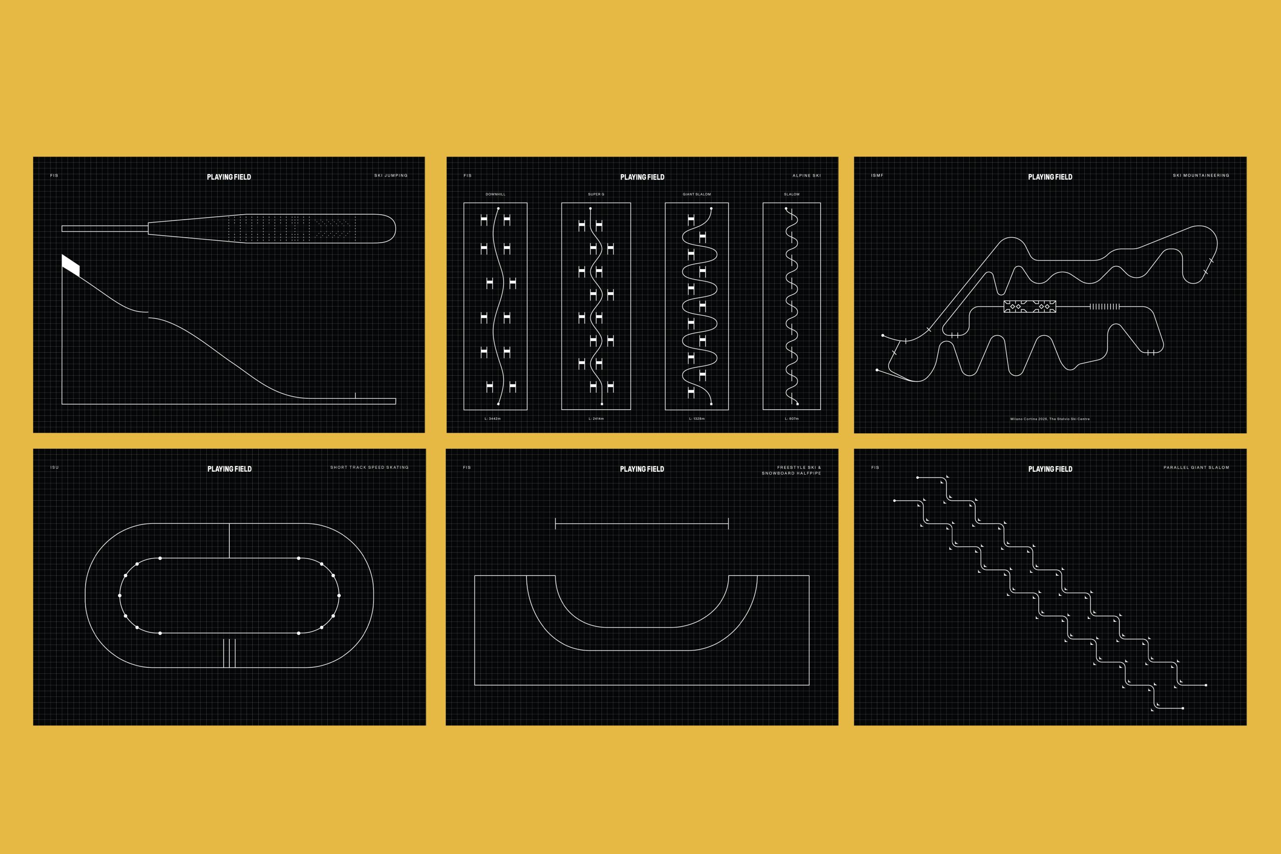 Inspired by the Milano Cortina 2026 Winter Olympic Games, we created a series of illustrations celebrating the Field of Play, representing all competing International Federations.